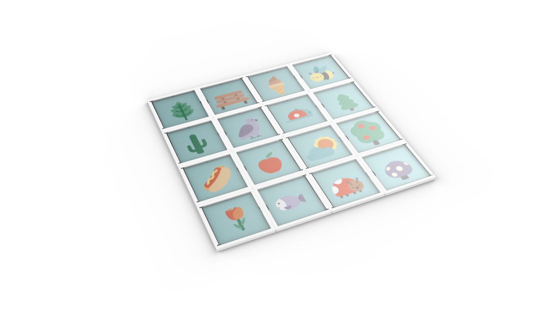 El Mapa MATATA incluye 16 rejillas magnéticas (10x10cm). Cada rejilla se puede abrir e insertar con diferentes tarjetas de historia que son de doble cara. Permite a los niños construir fondos ilimitados e incluso uno en 3D.